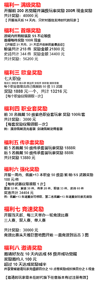 邀请好友十天内达成55级并觉醒,奖励邀请人100R,超过十天奖励减半