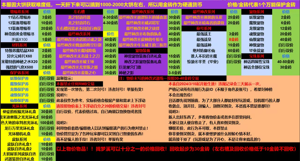 17:本服通用货币就是大饼-香水大饼一个55W金币,NPC购买道具都需要用到它,刷南门深渊爆的粉装备可以卖给NPC一个就是200W,也就是4B。装备带有回收字样的去赛利亚回收,有不同的大饼回收价值。